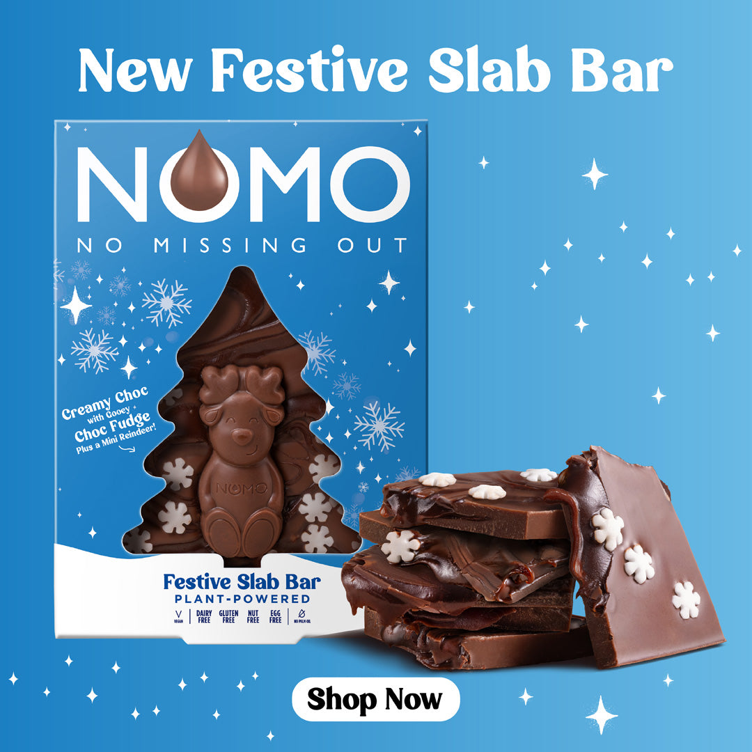 Looking for vegan Christmas chocolate that's a little different? Our latest addition to the NOMO Christmas chocolate range the Festive Slab Bar could be just that. It’s loaded with gooey choc fudge filling, snowy sprinkles and topped with a plant-powered Mini Cookie Dough Reindeer. Perfect for gifting or sharing, it’s a truly indulgent dairy free Christmas chocolate that’s sure to bring joy to anyone this festive season!