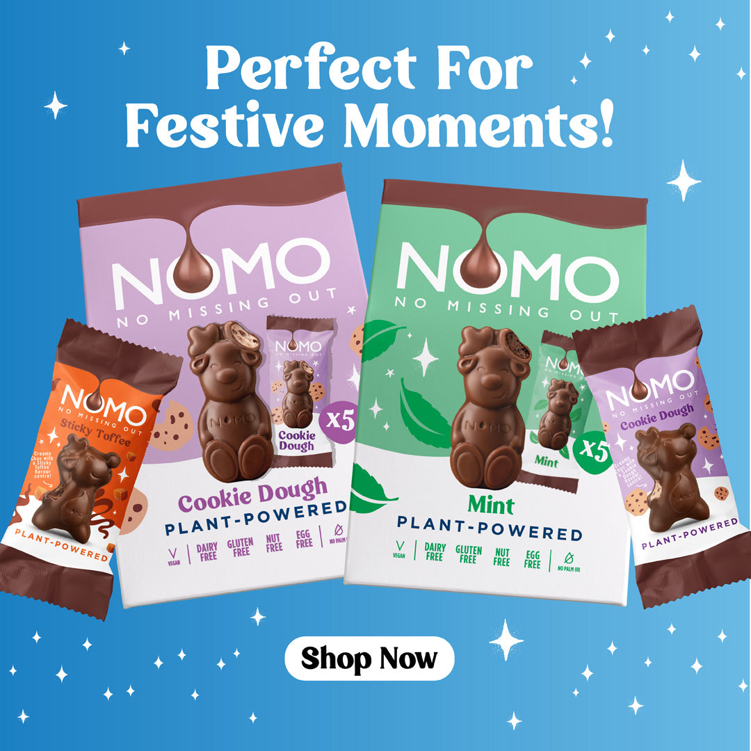 Our plant-powered collection is packed with festive favourites that everyone will love, from our award-winning reindeers to our Christmas chocolates for kids. Each bite of our dairy free Christmas chocolate delivers creamy indulgence without compromise. Whether you’re shopping for thoughtful dairy free Christmas chocolate gifts or looking for a special treat for yourself, our free from Christmas chocolate range ensures every moment tastes magical. With NOMO Christmas chocolate, you can fill stockings, countdown to the big day with our calendars and treat those you love with free from Christmas chocolate.
